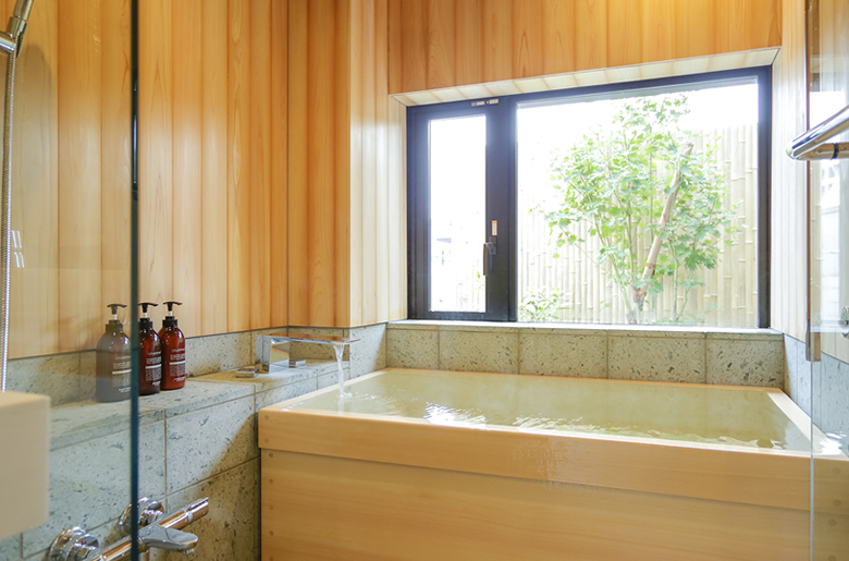 桜材を使用した室内と、坪庭の付いた檜風呂は都会にいることを忘れてしまいそう・・・
